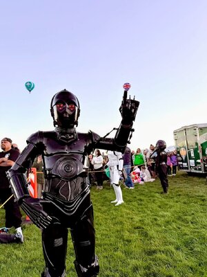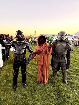 Got to take the death trooper out for a zoo troop and see how it did. Lots of fun, and lots of things to fix. First off, the cooling vest suggestion was a life saver in tandem with some big ol’ fans in my bucket. I was actually reasonably comfortable for the troop. The first big issue though, was my ability to walk. As you can see in this picture, my leg armor is touching, no good there. That is getting further trimmed. Second, my helmet pressed on my nose which was not immediately obvious to me that it would be an issue, until of course I was light headed and out of breath. I have modified my padding so it sits higher, and furthermore does not rest on my nose at all. Still waiting for official approval from GMLs but I have plenty I can work on in the meantime time. Thanks all for the help so far!2 points