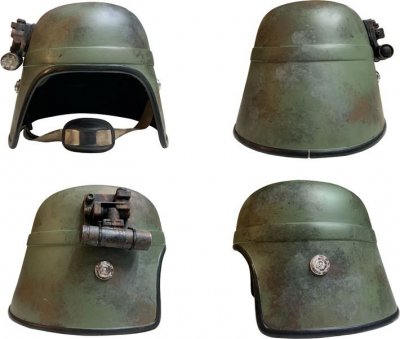 Mudtrooper CRL Deutsche Übersetzung von @furiosa @Janem Beschreibung: Mudtrooper Präfix: TX Detachment: Spec Ops Detachment Kontext: Solo: A Star Wars Story Mudtrooper sind Teil der imperialen Armee, deren Infanterie allmählich zugunsten der Sturmtruppen abgebaut wurde. Standard-Mudtrooper wurden durch ein rotes Bizeps-Abzeichen gekennzeichnet, während die Medics neben Standard-Mudtrooper kämpften und durch ein weißes Bizeps-Abzeichen am rechten Arm identifiziert wurden. Aufgrund der oft gefährlichen Natur der verschiedenen Welten, in denen sich das Imperium befand, trugen Mudtrooper eine Brille zum Schutz der Augen, versiegelte Körperanzüge und Sauerstoffmasken, um potenziell tödliche Substanzen herauszufiltern. Für die 501st Mitgliedschaft müssen nur die Anforderungen in Weiß erfüllt sein. Auf der folgenden Seite werden blau markierte Details empfohlen, die die Qualität des Kostüms verbessern. Rot gelistete Details sollen das fertige Kostüm weiter veredeln. Besondere Hinweise Die Rüstungsteile sind matt und bestehen aus einem dieser (oder ähnlichen) Materialien: Fiberglas ABS (Acrylnitril-Butadien-Styrol) HIPS (High Impact Polystyrol) Für die Mitgliedschaft in der Legion sind Waffen nicht erforderlich aufgrund unserer Waffen-Politik. Dieser visuelle Leitfaden wurde von Team-Mitgliedern des Detachments und dem LMO-Team überprüft und ist für die Verwendung als Mindestzulassungsrichtlinie für GMLs zertifiziert. GMLs sind frei, diesen Kostümtyp zu genehmigen. Dieses Dokument ist nicht als detaillierte Anleitung zum Thema Kostümbau gedacht, sondern als visuelle Anleitung für die 501st Kostümfreigabe. Details zur Konstruktion finden Sie in den jeweiligen Detachment-Webforum. GMLs, die über einen Aspekt des eingereichten Kostüms unsicher sind, müssen Fragen in der entsprechenden DL/GML per-Review-Sektion des Legionsforums zu veröffentlichen. Die in diesem Dokument angegebenen Details sind als Grundlage und verallgemeinert zu verstehen und nicht als Kriterium für die Zulassung. Die Anforderungen an alle 501st Kostüme sind in Größe, Passform und Abmessung proportional zum Träger zu bauen. Textbeschreibungen sind nur ein Teil der Richtlinie. GML's und Anwärter müssen bei der Überprüfung des Kostüms sowohl Text als auch Bilder (CRL und Referenz) berücksichtigen. Benötigte Kostümkomponenten Die folgenden Kostümkomponenten müssen vorhanden sein und aussehen wie unten beschrieben. Helm: Der Helm ist offen mit einer leicht ausgestellte Kante. Er besteht aus einem Dome mit verdickten Rand und Helmschürze. An der rechten Seite ist eine Telemetrie Einheit angebracht. Die Einheit wird am verdickten Rand des Domes ausgerichtet. Die Telemetrie Einheit besteht aus einer rechteckigen Box, mit Details, die denen des CRL Bildes entsprechen. Die Telemterie Einheit ist schwarz. Das untere Ende der Telemetire Einheit steht unten vom Helm ab, so dass das Gummiband der Schutzbrille darunter durchlaufen kann. Ein kleines, taktisches Licht kann am unteren Ende der Telemetrie Einheit angebracht werden. Ein Gummiband oder ein Band das aussieht aus wie ein Gummiband, bedeckt die komplette untere Kante des Helmes. Die Enden des Bandes werden auf der Helmrückseite zusammengeführt. Metall- oder Silberfarbene imperiale Code Disks sind auf beiden Seiten der Helmschürze angebracht. Die Code Disks dürfen geweatherd sein. Der Helm wird matt olivegrün angemalt. Die Farbe soll der Rüstungsfarbe entsprechen. Der Anstrich des Helms darf texturiert sein und kann moderat geweatherd werden. Der Helm hat einen schwarzen Kinnschutz der mit einem Gurtband befestigt wird. Das Gurtband ist hellbraun und soll leicht geweatherd sein. OPTIONAL Zertifizierung der Stufe zwei (falls zutreffend): Der Helm hat eine schwarz/dunkelgraue Polystyrol-Innenauskleidung, wie die eines Skate- oder Fahrradhelmes. Um den äusseren, oberen Abschnitt der Telemetrieeinheit, darf ein Stück elastisches Seil von ca. 4-5 mm Durchmesser geschlungen werden. Wenn vorhanden, muss die taktische Taschenlampe auf der rechten Seite des Helmes eine ca. 90 mm (3,5") schwarze Aluminium-Taschenlampe, mit Rändelung an beiden Enden und einem Gummi-Druckschalter sein. Die Taschenlampe muss nicht funktionieren. Die Code Disks weisen keine Kerben- oder Nutdetails auf. Die grüne Farbe ist ähnlich Pantone 350U. Schutzbrille Die Brille muss einen gealterten Chromrahmen mit Detailbemalung und Verwitterung aufweisen, um dem Referenzbild zu entsprechen. Der gerändelte Nasenrückenversteller ist aus Messing gefertigt. Die Brille muss einen Besatz um den metallischen Rahmen haben. Der Besatz muss aus Gummi oder Schaumstoff sein. Die Brille hat eine dunkel abgewinkelte Linse mit zwei flachen Panelen auf jeder Seite. Das Gummiband der Brille verfügt über zwei Größen - Das dünnere elastische Band wird direkt an der Brille befestigt und an das breiter Band genäht, das den Hauptbrillenband darstellt. Das Brillenband ist mit einer Reihe von Schnallen ausgestattet: Auf jeder Seite der Brille befinden sich metallische Schnallen, durch die das 25 mm breite Gummiband geführt wird. Auf der linken Seite befindet sich eine große Schnalle, durch die das 40mm breite Gummiband geführt wird. Dieses Greeblie hat ein beigefarbenes Quadrat. Zwei schwarze Kunststoff-Dreifachgleiter auf der rechten Rückseite, durch die das 40mm Gummiband geführt wird. Die Brille kann über den Augen oder am Rand des Helmes getragen werden. OPTIONAL Zertifizierung der Stufe zwei (falls zutreffend): Gezahnte 25 mm Schiebeschnallen auf jeder Seite der Brille, durch die das 25 mm breite Gummiband geführt wird. Die Brillenbänder sind ca. 25mm und 40mm breit Atemschutzmaske Das Atemschutzgerät ist so gross, dass die untere Hälfte des Gesichts des Trägers abgedeckt wird. Das Atemschutzgerät ist matt olivgrün und moderat geweatherd zu lackieren. Das Atemschutzgerät hat einen "Mund", der einen gebogenen Boden, kurze gebogene vertikale Seiten und eine gewölbte