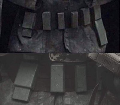 @Blackwatch Looks good. Lower belt and tunic settled. I feel that what you did there is a good compromise of the color. Keeps the Pantones but provides some flexibility. Shins need the color update as well however. I think the goggle strapping last line can be combined or be a sub-bullet of the line above it regarding the 25mm. It's an extension description of how the strapping should be accomplished. These would be the remaining items that need to be settled then: 1) M4 hex screw. Does the specificity of M4 need to be Level 1 (personally I feel not) or Level 2? 2) DLT-19 added to optional w/ flashlight. I need reference shots emphasizing that please. 3) Drop box approx. dimensions. Pull those in for Level 2 or leave out entirely. 4) Respirator rubber trim. It's being removed, but I believe I read somewhere that while it isn't rubber trim, it was confirmed that there is an interior mask which is what gave us the appearance of trim. Maybe I misread or am remembering wrong. Are we adding that in place of the trim? See picture below as an example.