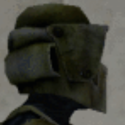 I do understand what you are saying about the snout now I think a good way to do this would be to update both the Swamp Trooper and this text to have a gallery image of the helmet on the CRL that persons aiming for L2 can reference, especially if the model doesn't have it. I'd like to keep L1 for an either or and then L2 need to one from in the game. ------------------ For the decal on both sides of the blinder, I went to the Swamp Trooper reference photos as it is a reskin from what I can tell: vs I just don't think there is enough to conclusively say one or the either since it is so low-poly. I'd be inclined to utilize the "C" decal for both sides and mirror them from each other under L2. We may need to update the text on both the Swamp Trooper to specifically talk about the decal only needing to be present on the left side for L1 and for L2 that it needs to be on both and mirrored for the right. This is a super good discussion.
