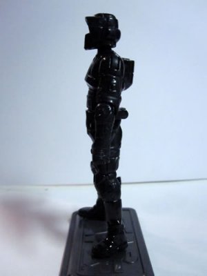 Okay, so I promised these and they're a little late... But let's post these anyway! Stripes! knees plate didn't turn out too well, se that may get some touch ups by hand: Backpack back section. Stinger is attached. So far I've just used glue and zip ties to attach everything: Some of the other parts are painted and getting ready to be attached. still have to gather up a few more parts to get it to work, just didn't have much time to go out today: Now I'm going to bed. I have Ninjas to attend to in the morning! Laters, -iz
