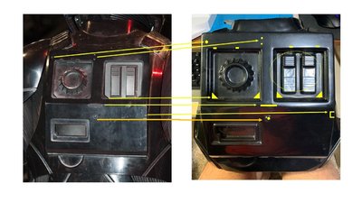 @jc1327 Justin, Sorry it took me a few days, I am in the KSA working on a job, but I finally had a chance to take a look at your 850 back piece and compare it with a screen used back and the new CRL. I have attached a side by side comparison with things that you can fix with a dremel, auto bondo, or some ABS and ABS paste. (Sizes are approximate, I don't have my armor with me to measure exactly, maybe someone who has either Jimmi's, Denis's, Sean's or Andrew's kits can measure exactly for you.) *upper left corner: there is a small circle approximately 2-3mm in radius (can be backed with auto bondo or ABS paste and then drilled about 1.5-2mm deep *upper left center: there are two small squares the same size as the small circle and can be made the same way as the circle. *top edges of each large square details have two raised rectangles, approximately 1.5x3-4mm, these can be made with ABS paste or bondo and then shaped to size. Make sure when you position them that they are as close to the screen's back location as possible. *your COG has the correct number of spokes and has a good shape and detail, no worries with that. *the two small vertical greeblies in the right hand large square need to be worked on, the lower portions have some ridges that are supposed to be flat, then on the upper portion of the rectangles, the raised horizontal ridges' detail needs to be sharpened. You can fix this by back filling with bondo or ABS paste and then taking a thin dremel cutting wheel and deepening the grooves between the raised ridges, not too much but just enough to make them more obvious. *both large square's lower corners need a small angled 45 degree piece. This can be done with bondo or ABS paste and then shaped to match. *center / center of the back piece, there needs to be a raised rectangle approx. 2mmx15-20mm center of the ridge and aligned along the lower side of the horizontal ridge. This can be made the same way as the above smaller raised rectangles. *lower / center, the raise "bump" on your piece needs to have a smaller radius, should be approx. 2.5-3mm. You can back fill the dot with bondo or ABS paste and then add a smaller raised dot, this can be made with anything, a small piece of plastic dowel cut to about 2.5-3mm in height can be glued in place. ( Your GML might approve this as is.) *right / lower along the right outer edge is a three sided rectangle which is cur into the back as if you were engraving a block letter "C". This can be done back back filling and then dremel-ing the proper shaped grove into the back piece. Make sure the lines are straight and the groove depth uniform. The "NEW and improved" 850 back has one on each side which is NOT correct, so even if you bought that one, the left hand detail would have to be filled in and sanded smooth. I'm not too sure that the side "vents" details along the lower outside edges of the 850 piece are sharp enough but they can be sharpened just like the vertical rectangle raised ridges mentioned above. (Check with GML) I HIGHLY recommend getting with one of your Garrison GML's and show them this fix and your current pieces to see if they would approve your armor with these modifications made. If they give you a thumbs up, then you will need to decide if the above fixes are worth doing yourself or spending the $190. I can't remember if your version has the neck collar as 1/2 part of the front and 1/2 of the back or not. That would need to be a whole different undertaking. You might be better off getting someone with the collar files to print you one off and then you cut the 850 off and bond the printed collar to the back piece which is the correct way it is made. Let me know if you have any questions.