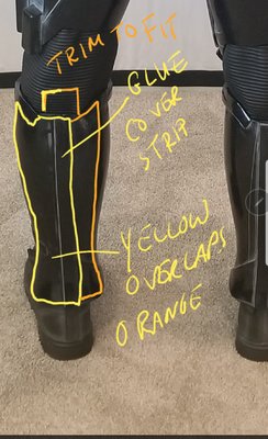 @Lt. Dan hey man, it looks like your thighs are not rounded enough. Food for thought, if your armor is 3d filament and you are willing, take a hair dryer or heat gun on low, put your undersuit gaskets on and from the inside gently heat the inside areas "Gently" then when they are warm enough to flex, wrap them in place around your thighs. Once you get a good fit, you can then mark and trim the ribbed areas to fit. For appearances, try and keep the (CORRECTED) outside ribbed area narrower than the inside. A lot of people, to include myself, made the circumstance adjustments and sacrificed the inner rib width to make our thighs fit. You can then glue the outer sides, and clamshell velcro the inside so they are easier to put on.