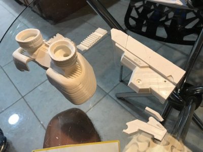 After seeing the DT’s make an appearance in the Mandalorian, I decided it was time to get off my butt and finally finish my DT that I started a long time ago... Gonna need some guidance as I’ve been disconnected from this for a while so comments/suggestions/advice are welcome Helmet and armor: 3D printed (TDK Props files) gloves: Endor Finders Undersuit: Darkside Closet forearm bands and rubber gasket for helmet: Plastic Arms Dealer belt kit: Various suppliers - leather pouch and holster: K Roundtree - soft pouches: K Lugo DLT19 and E-11D: 3D Printed (TDK Props files) [I’ll update this as I proceed] printed the accessories for the helmet first. Had some white PLA lying around so I used it (After baking it out). Had some flow issues, but generally pleased with how these turned out. Got some new black PLA so printing the main bucket as we speak.
