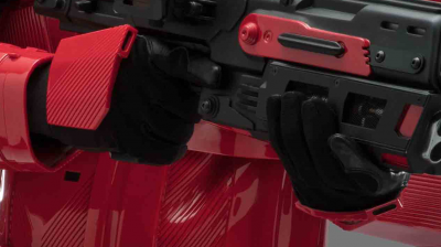 1. Another one up for agreement Shoulder Bells Finished in a high gloss deep red that matches the colors of the entire costume One on each shoulder and are the same shape but different from each other in features Both the front and back lower edges have a graduated step/angular edge At the top of each shoulder is a small extension or lip that appears from underneath, is rounded and butts up to the cuirass. When viewed from the front it appears as a little ledge that is lower than the top of the shoulder Right Shoulder Has about 16 recessed lines that start from the top edge of the angular section of the bell from front to back forming an arc On the top is a "shoulder mounted sensor telemetry pod", and is mounted on a bracket that is fixed to the top of the shoulder The sensor is circular when seen from the front and side mounted to the bracket The front most part of the sensor is matt black, the remainder is red and matches the armour Has a cone like protuberance forming an antenna from the centre The bracket is red matching the armour There is an angular and chamfered box on the side of the bell The outermost part has an extended raised rectangular chamfered box that has three black oblong recesses areas. Two larger ones to the bottom right and one smaller one to the top left Vertical recessed lines on each side of the box Horizontal channel at the top of box about 6-8mm wide Left Shoulder Has vertical recessed lines running from the bottom to about ¾ up the bell forming an arc The recessed lines terminate in an arc shape that mirrors the arc on the bottom of the bell The total width of the recessed lines equals the same width as the bottom of the bell OPTIONAL Level two certification (if applicable): Right shoulder has approximately 16 horizontal recessed lines 1-2mm wide, spaced about 4-5mm apart each that form the arc Shoulder Mounted Sensor telemetry pod Has 2 recessed and 2 raised concentric circles starting from the cone forming a total of 4 concentric circles Antenna is hollow Shoulder Mounted Sensor bracket has the following details Semi circle shape attached to bracket when viewed from the rear, with a small circle that has a spherical button towards the right side The flat top of the rear part of the bracket has a oblong bubble shape in the back left corner when viewed from the rear There is a horizontal line that runs along the rear of the bracket The outer most side of the bracket is an L shape There is a circular button/pin detail on the top right of the bracket when viewed from the side There is a circular indentation diagonally downwards from the button, when viewed from the side There is an indentation when viewed from the rear Approx 8 vertical recessed line on each side of the angular and chamfered box on the side of the bell Left Shoulder has approximately 36 vertical recessed lines are 1-2mm wide spaced 4-5mm apart