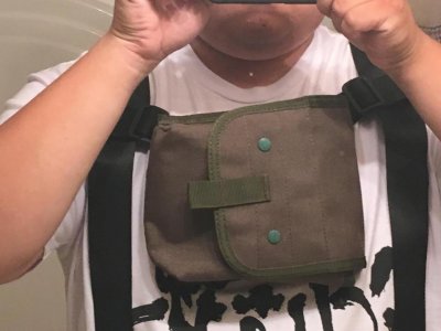 Just finished the suspenders and figured out how to mount the chest pouch , excuse the OD pouch the black one has been ordered and on its way . I made a removable cross strap that has a slot for the MOLLE strap to slide into . -