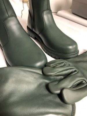 The Hunter Bay boots come black and need to be an olive green. I decided on Angelus Leather paints for this application as I've used them in the past and had good success with it. It thins easily and I can run it through my airbrush which helps it go down nice and even and thin which appears to help with cracking over time. I prepped the boots by cleaning them with isopropyl alcohol only. Once dry I laid down an even coat of paint which was thinned with isopropyl and airbrush reducer. The boot color did not match the glove color so I used the same process to ensure gloves and boots matched.