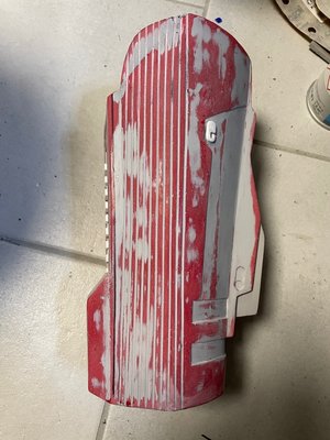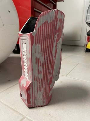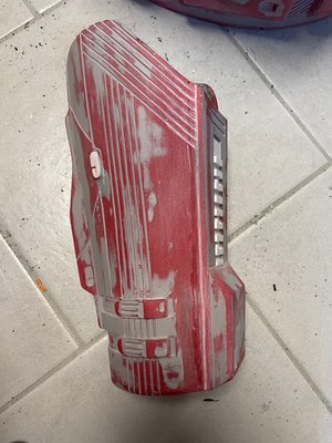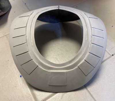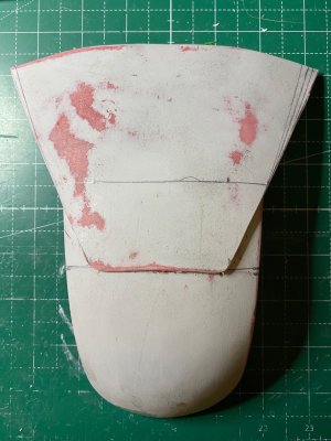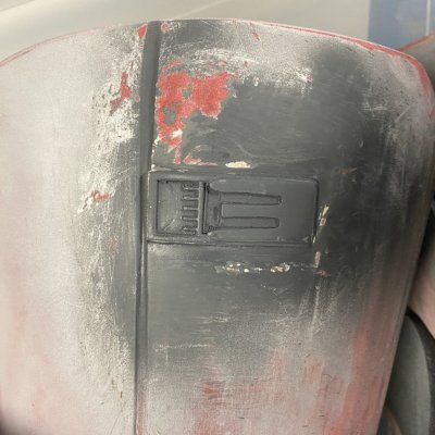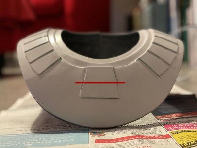 Hi everyone - I've been following the CRL development for the Sith Trooper for a while and now, as things are getting more and more concrete, I have finally started the work on my costume. I'm starting this thread to document the build and also to run a couple of things by you that I haven't been able to figure out as the CRL draft obviously doesn't have any image documentation yet. My initial build will be the kit from Jimmiroquai that I ordered last fall before the launch of TROS. Here's a quick overview of what else I'm planning to use: Armor Kit - Jimmiroquai with updated chest, shoulder bell and lower arm Helmet Kits - Jimmiroquai/Armory Shop/Sanotized Creations Boots - Imperial Boots (high gloss finish with clear rubber coating spray) Gloves - Imperial Boots Belt - Rubber from Armory Shop (too thin though as per latest draft) Blaster - Printed from Empire3D's files Gasket Sheets - Imperial Boots For the color of the armor I'm thinking Montana Gold S3020 Sh. Kent Blood Red. I started with the easiest bit and sprayed my boots to give them a high gloss finish. Next, I started filling and sanding the armor party and helmet. I also moved the shoulder strip lines foward. I was really struggling with properly getting them done with a ruler and a Dremel and ended up using a file. Half way through, I thought I had ruined the chest and ordered a spare but ultimately I got there on the original one, I think. I also added the greeblies to the upper thighs. I used 3d printed clips and still need to apply some of the details as the half circle didn't print properly but that should be an easy fix. I'm currently stuck on the cod piece as the measurements of the one I have seem to differ from the ones given in the draft description. I'm reading the section so that the part should look more like this, particularly regarding the overlap of the upper trapezoid section over the curved bottom section. A fair bit of the area at the top will disappear behind the belt, so I guess that would work. It'd be great to know if any of you have already started tweaking their armor to match the CRL draft? Many thanks in advance!
