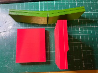 I started creating and printing new belt boxes based on the CRL dimensions... and trimmed the cod piece so that the upper part overlaps the lower part by 1.5".