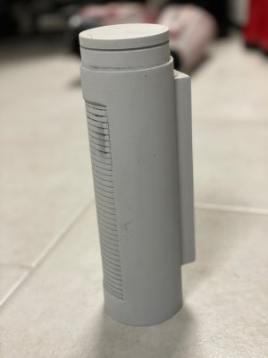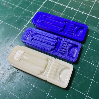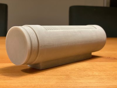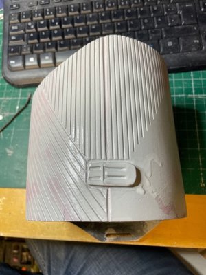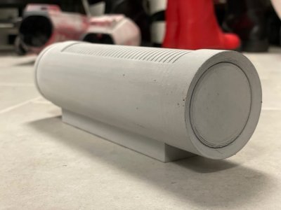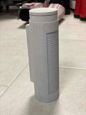 I realised that the Thermal Detonator in my kit varies from the WIP CRL description so I made a new one from scratch and 3D printed it. This is it after rough sanding and a first coat of filler.