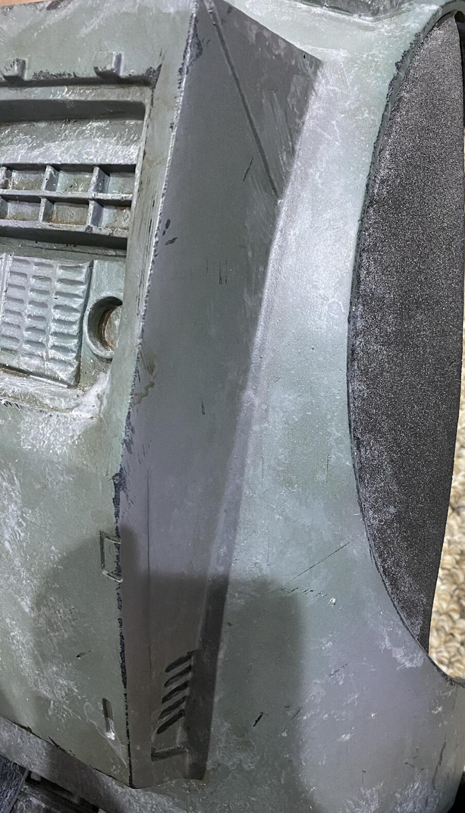 I masked the black undercoat in several areas to create a natural chipping effect. Then I scuffed up the armor using a wire brush and a bit of sandpaper, and added some deeper scratches with a metal file.