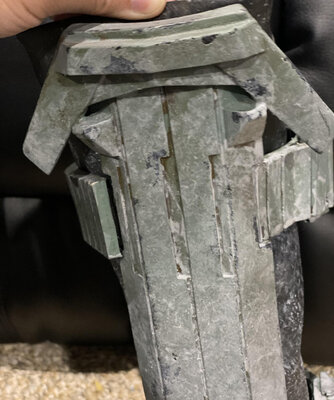 For the weathering, I made my own Mimban mud using a mix of acrylic grey paint, real sand, and Fuller’s earth. I applied it with different brushes and sponges, mostly using a dabbing technique to build up the texture.