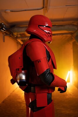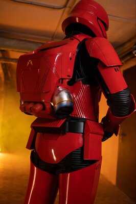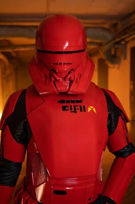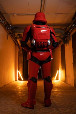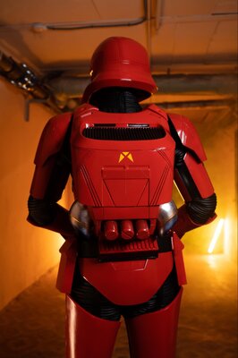 Excellent! The only place the draft CRL indicates a color is the start of the helmet section and the color of the boots. This will make it easy to change the reference from white to red. Maybe both color options can be defined in the final CRL? We are using a standard RAL color code; RAL3002 Carmine red. For the boots I'd suggest using the section out of the current CRL for the Sith Trooper; Boots/Boot Armor This component has additional pics showing an (oblique view of the boot) Boots: "FO" style boot finished in a gloss or semi-gloss red that closely resembles the armor. Sole is black rubber with no visible heel. No visible buckles or laces. Boot Armor: Finished in a high gloss deep red that matches the colors of the entire costume. Fixed to the top of the boot and sits under the spats. Divided into 3 sections that have the following details: The front panel is of equal width to and lines up with the front section of the shin. The top front section has a number of recessed lines running vertically as shown. The outer section has diagonal lines running parallel to the edge of the armor as shown. The inner panel is smooth/flat and has no recessed lines. OPTIONAL Level two certification (if applicable): The boot color and gloss shall match the armor. Top front section of the armor has approx. 10 recessed lines. Outer section of the armor has at least 14 visible recessed lines. Rectangular section on the toe and the heel of the boot that is knurled. Stitching at the top of the sole runs the entire diameter of the boot. There is a seam down both sides of the front that swoops out to the side of the foot. There is a vertical zipper on the inside that spans the height of the boot. -