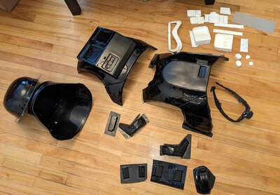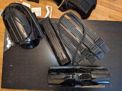 Today I received my hard parts from Walt's trooper Factory and I wanted to share some pictures of them with you. As you can see, it includes the greaves, that aren't needed for the Aldhani version, and the helmet. It includes the round greeblies on each side of the helmet but in plastic. I already have some in metal that will look much better instead. There are some pieces that I'm still not sure what they are about but Walt is pretty helpful. It's the first time I work on a plastic costume that needs to be fully painted. I wonder, what sort & color of primers would you recommend? Following the great job by @sonfield, I have ordered three cans of Anthracite Montana Gold paint. I hope it's enough. They aren't easy to find, in Canada.